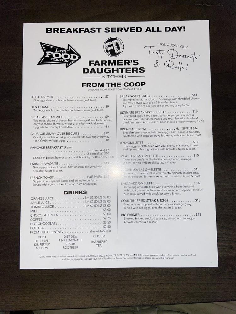 Welcome to Farmer's Daughters Kitchen, where American classics come to life! Located at 1430 Giant Dr in Blue Earth, MN, we pride ourselves on using locally sourced ingredients to craft homemade rolls and muffins, baked fresh daily. Our seasonal menu boasts daily specials and a delightful brunch every Sunday. Enjoy excellent coffee, delicious desserts, and local specialties in a warm and welcoming atmosphere. With options for dine-in, takeout, and delivery, we cater to all your cravings. Please note, reservations must be made via phone. Come and experience the heart of home-cooked goodness today!